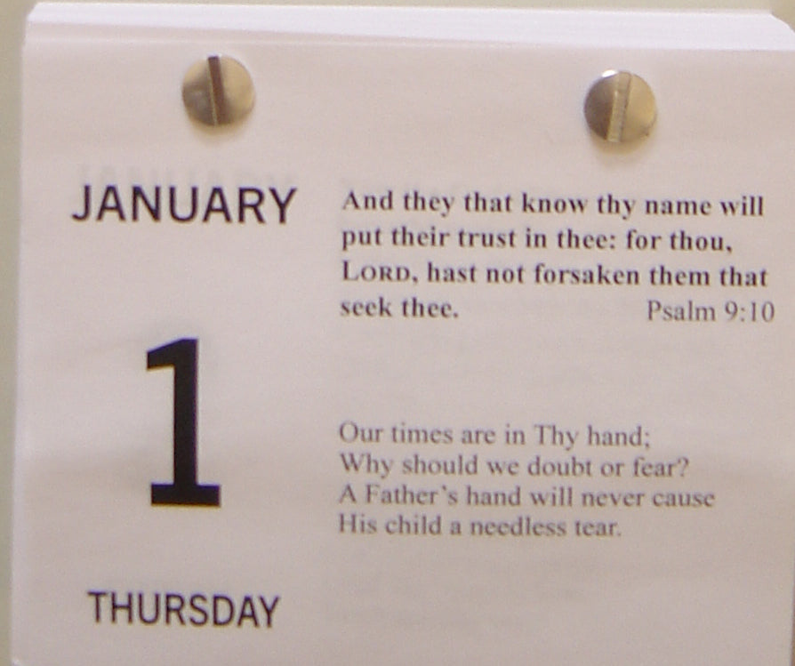 Daily tear-off block calendar with text (Authorized [King James] version) and devotional ministry